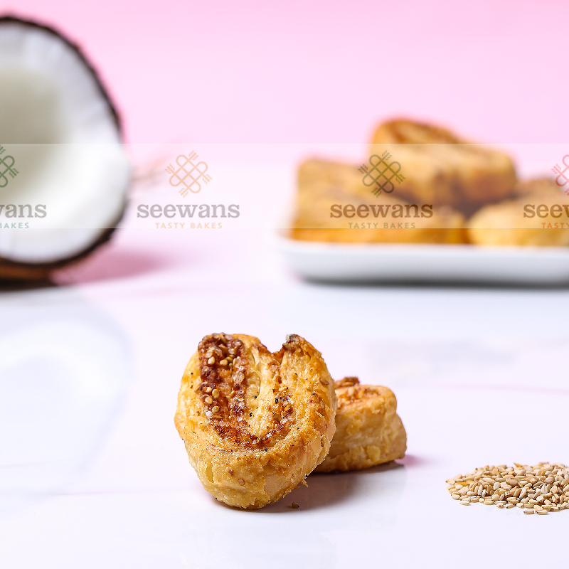 tropical allure of coconut powder. With each bite, you will encounter the perfect balance of crispy, flaky layers and a sweet, coconut-infused core. Finger Heart Khari is not just a snack , its a sweet.