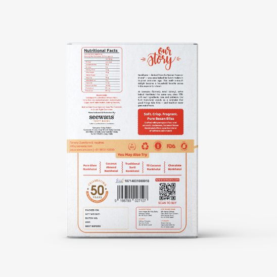 Seewans, renowned for its decades-long baking legacy, presents the authenticity and time-tested quality of Surat's culinary heritage. 'Pure Besan Nankhatai with Elaichi' is a tribute to the city's rich traditions, offering a taste of excellence in every soft, crisp, and fragrant bite.