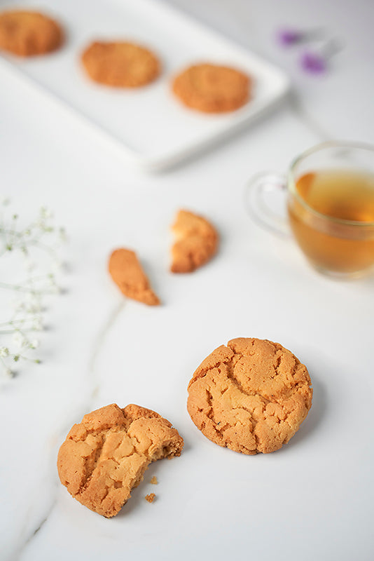 What sets these treats apart is their unique texture, combining softness and crispiness akin to cookies. With every bite, the rich, nutty notes of Besan come alive, beautifully complemented by the aromatic and exotic touch of Elaichi.